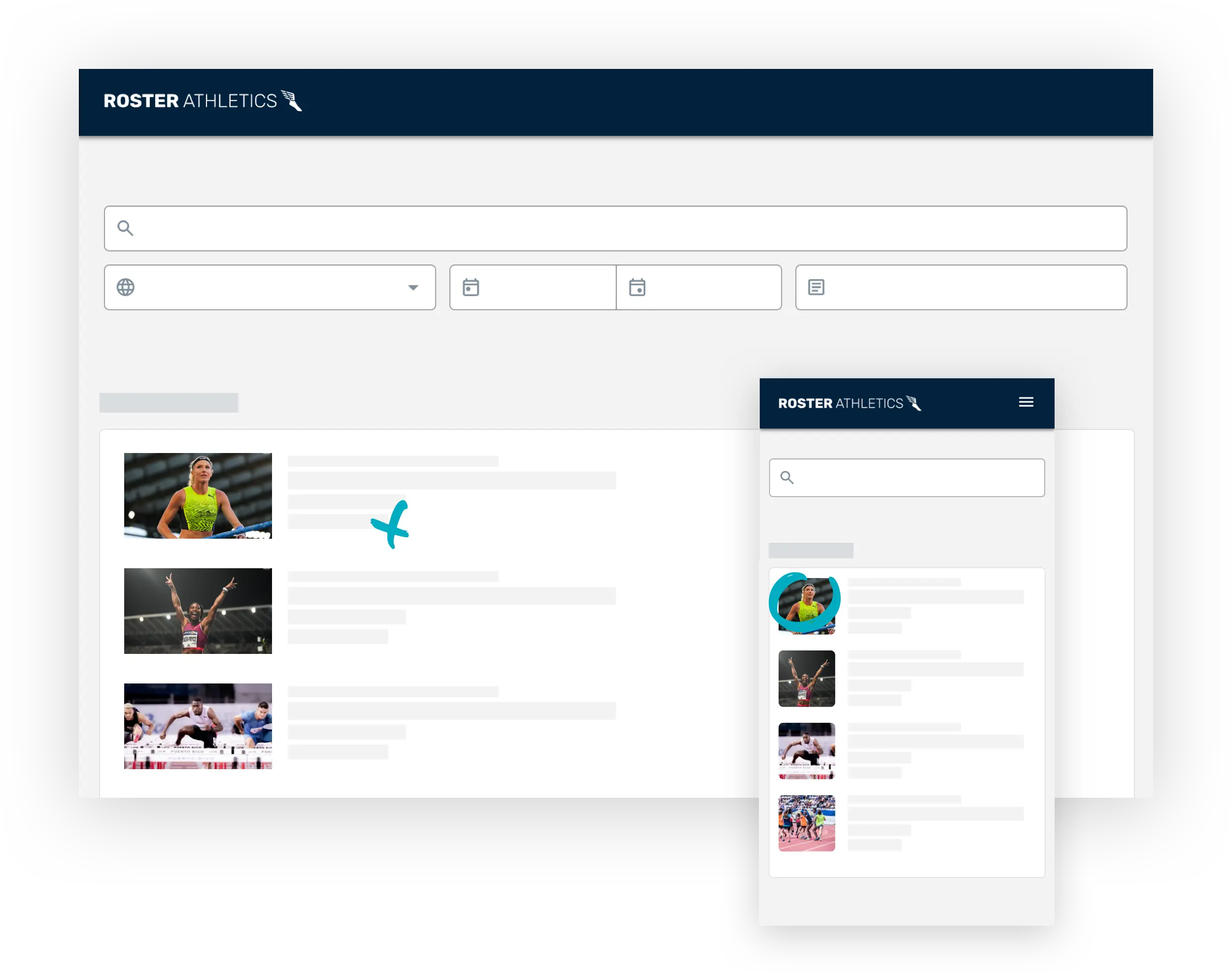 Roster Athletics’ mobile app brings the audience into the competition by providing live results, videos, photos, and commentary from the organiser and fans through the chat feed.